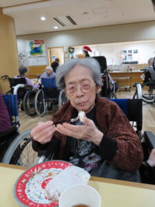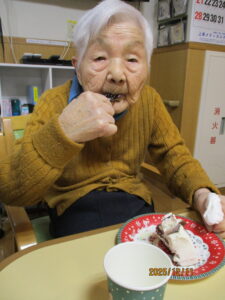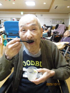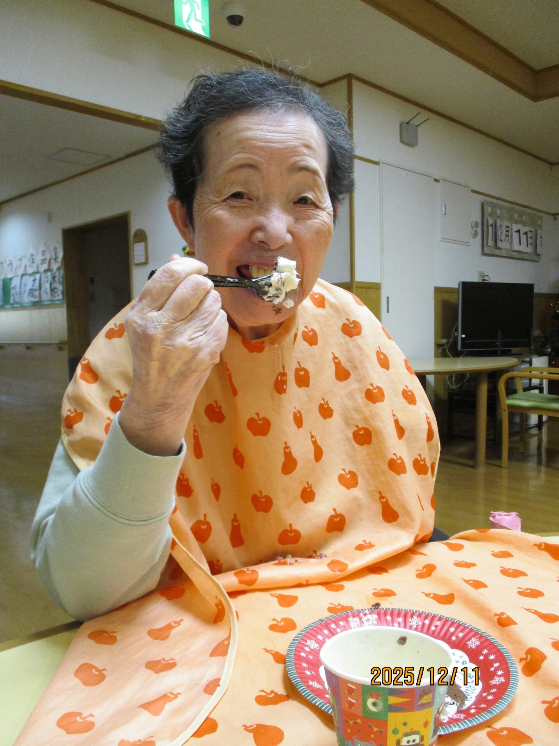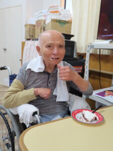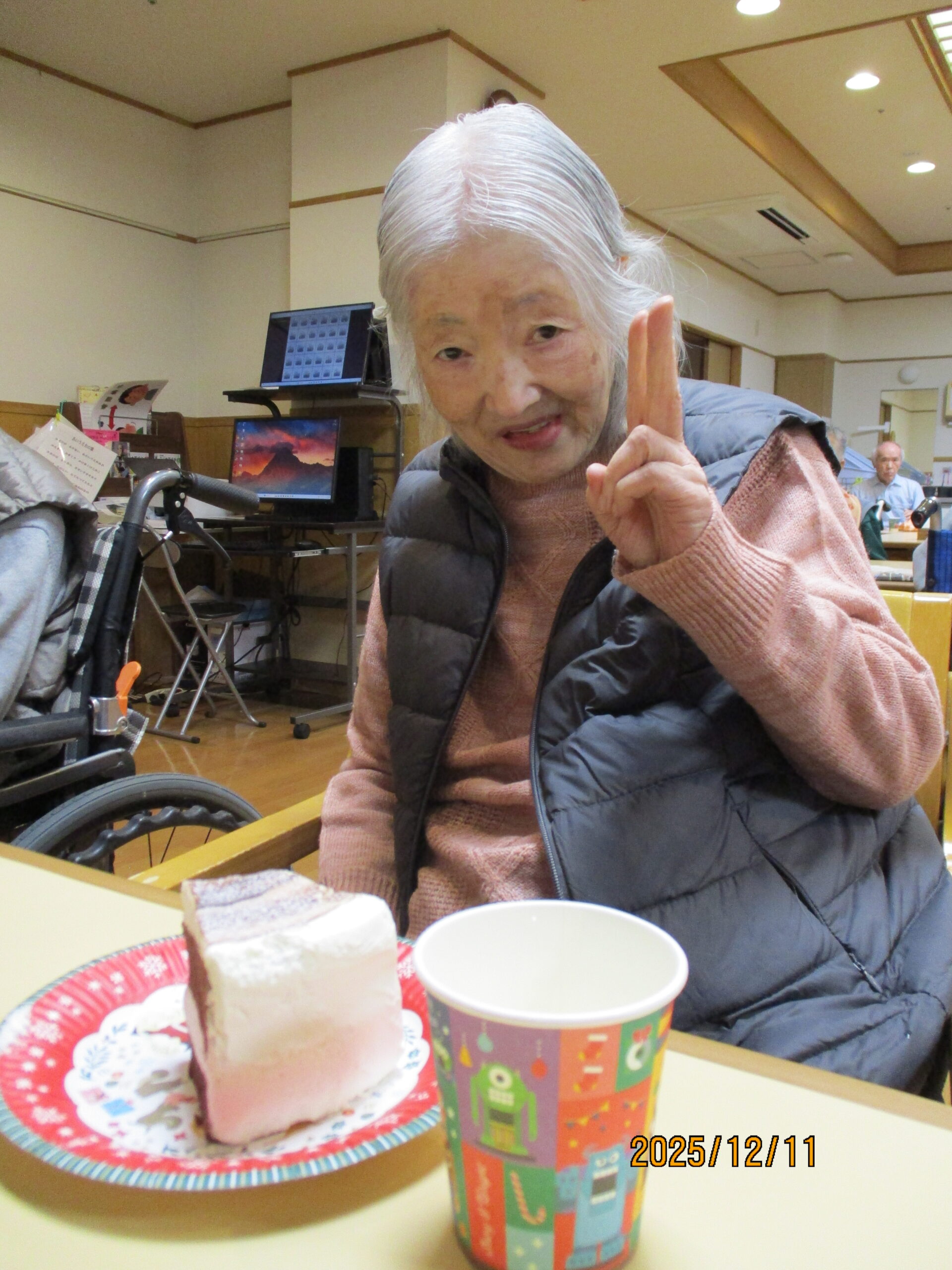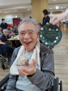 皆さんで歌を歌ったあとはケーキやプリンを食べてほっとひと息😋