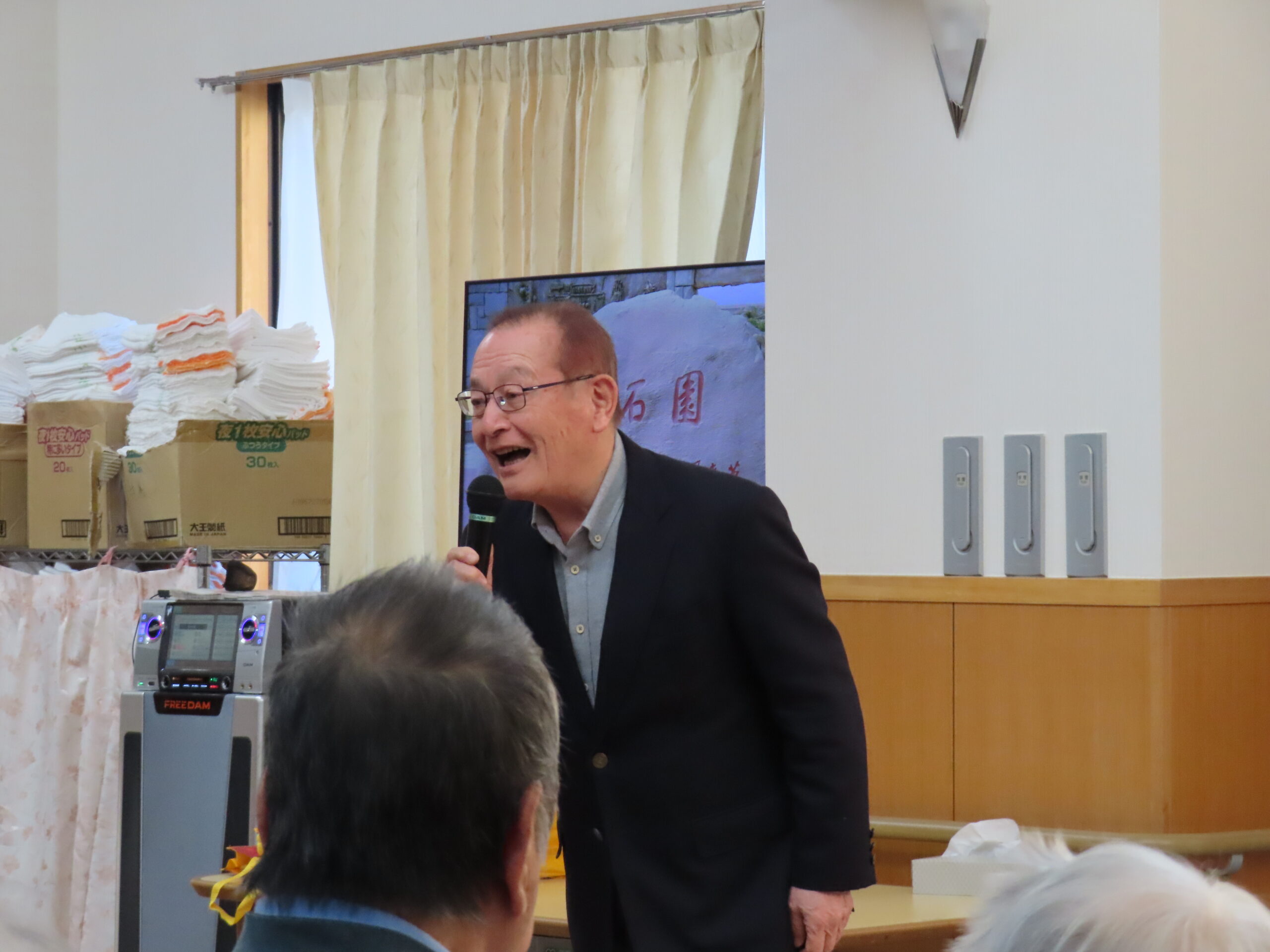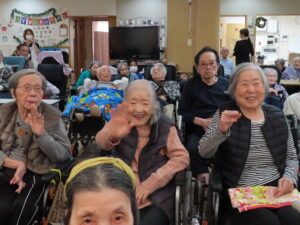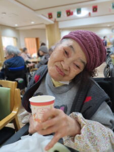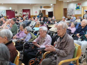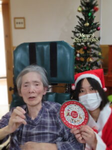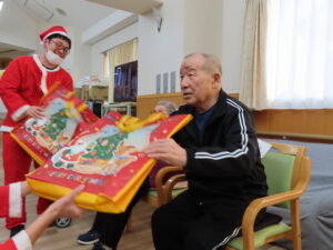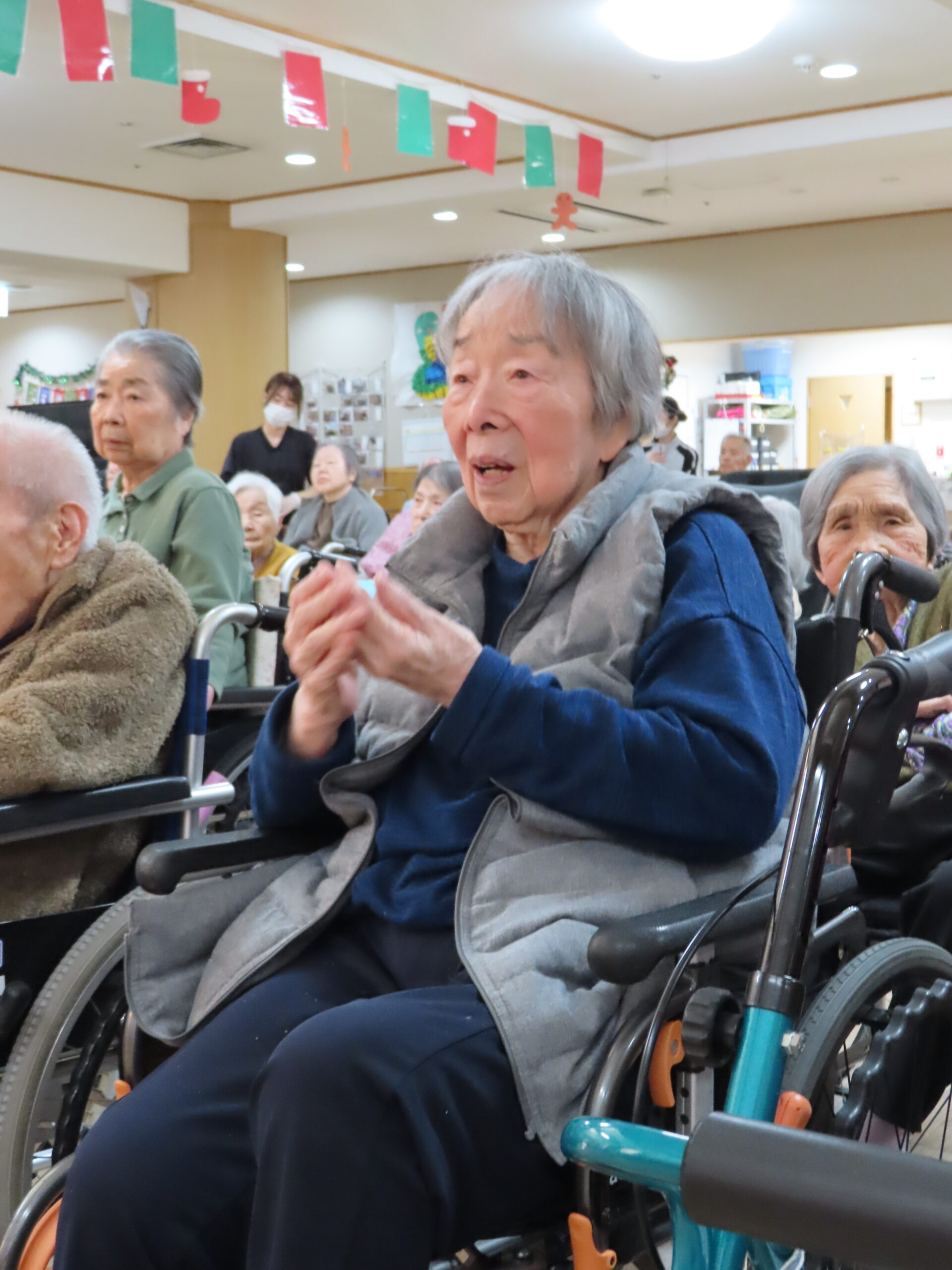 サンタクロースに扮した特養職員が司会を務め、皆さん待ちに待ったクリスマス会のスタートです👏