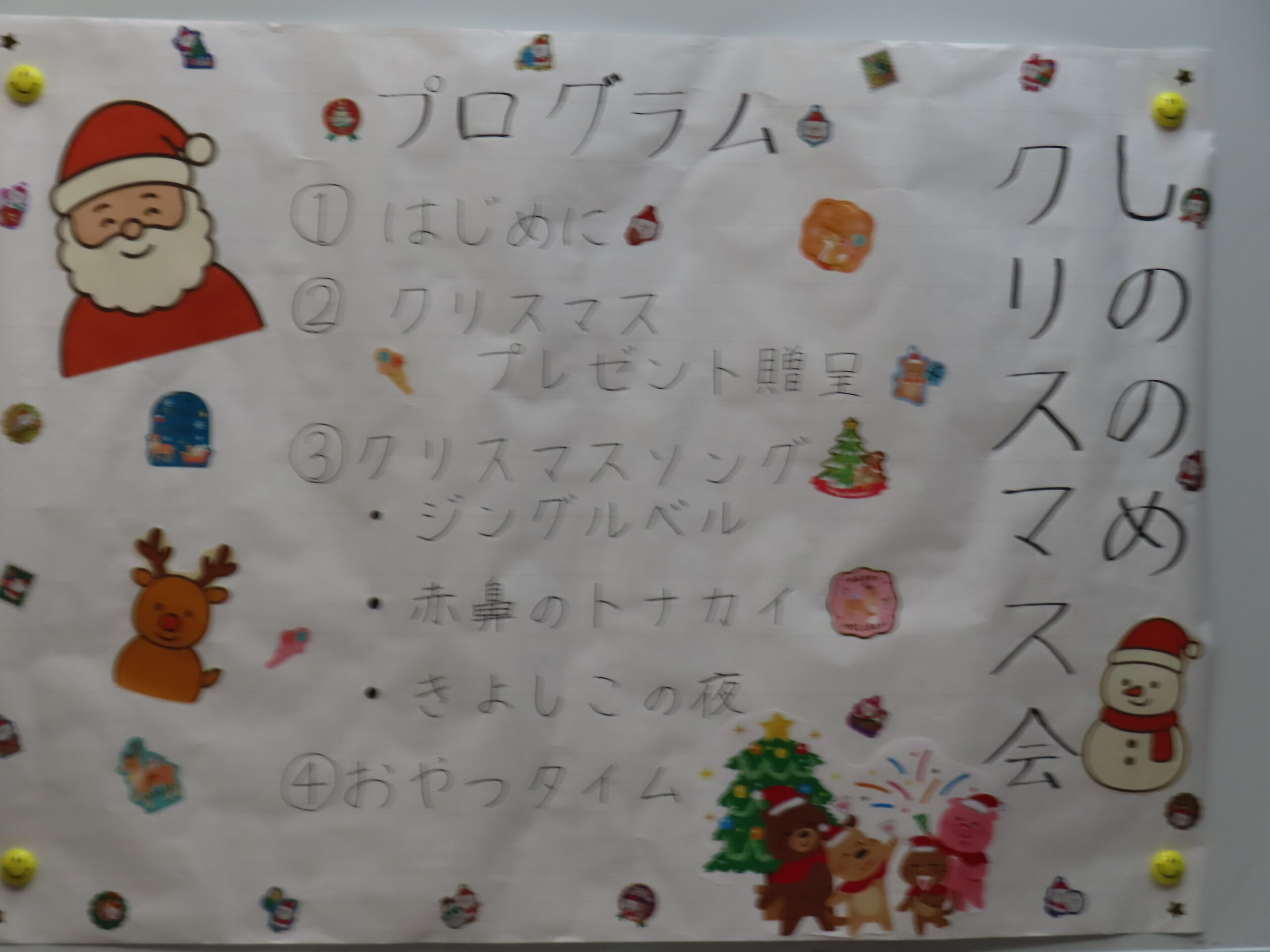 先日しののめでもクリスマス会を開催しましたので今回はその様子をご紹介させていただきます。