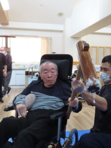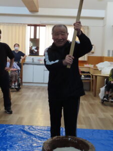 施設長、職員も力強くお餅をついて世代を超えて楽しまれていました😁🎶