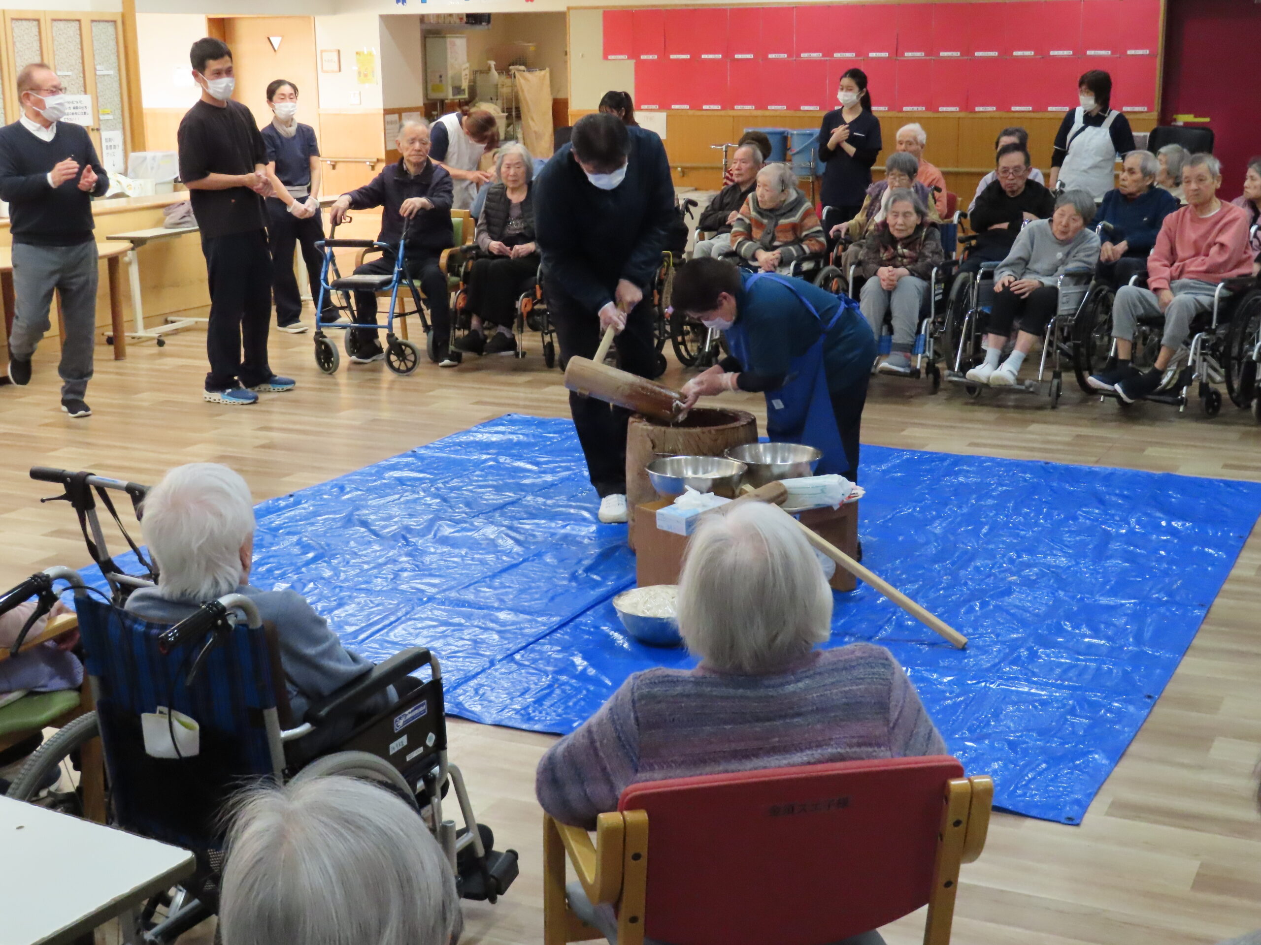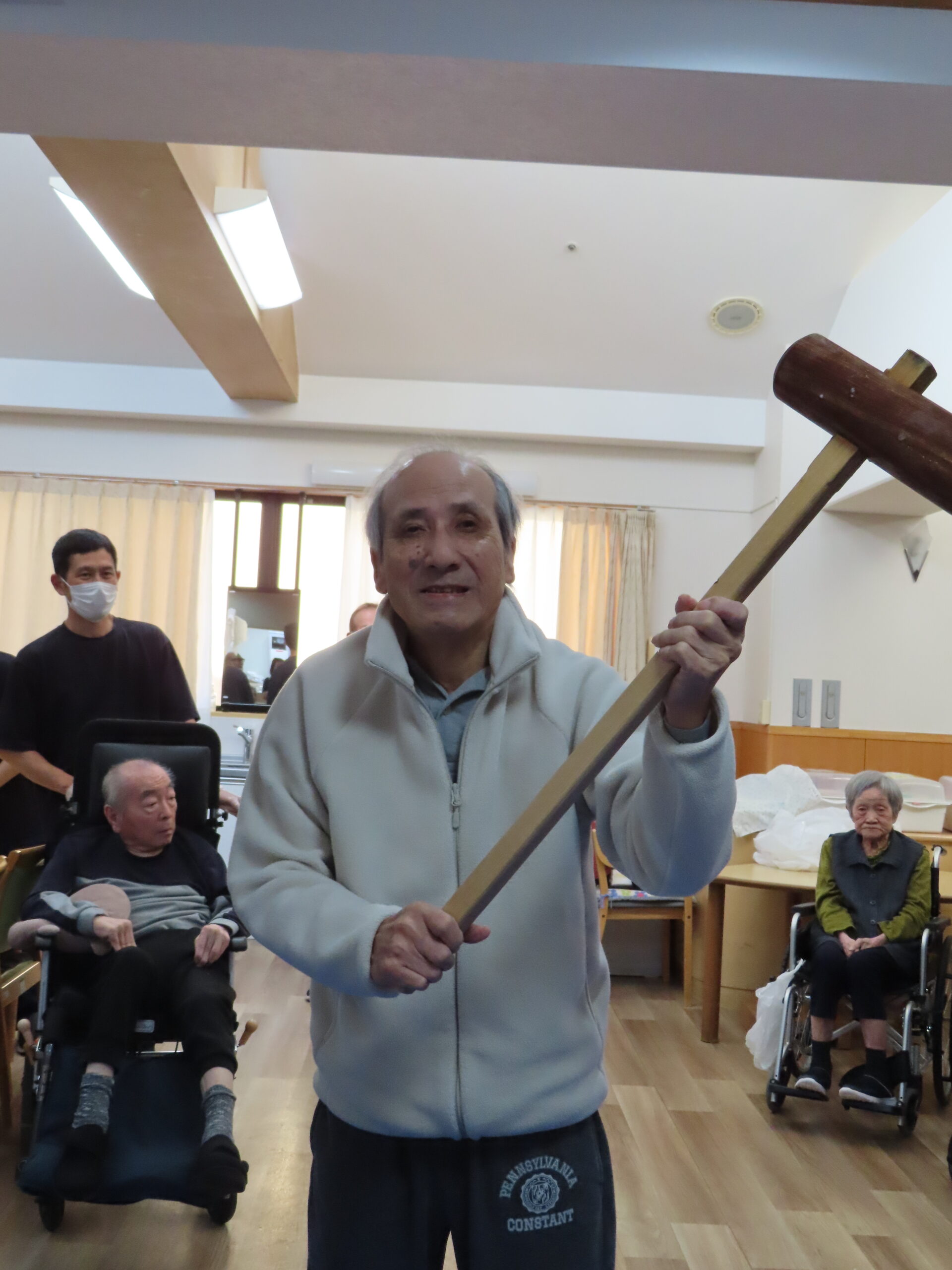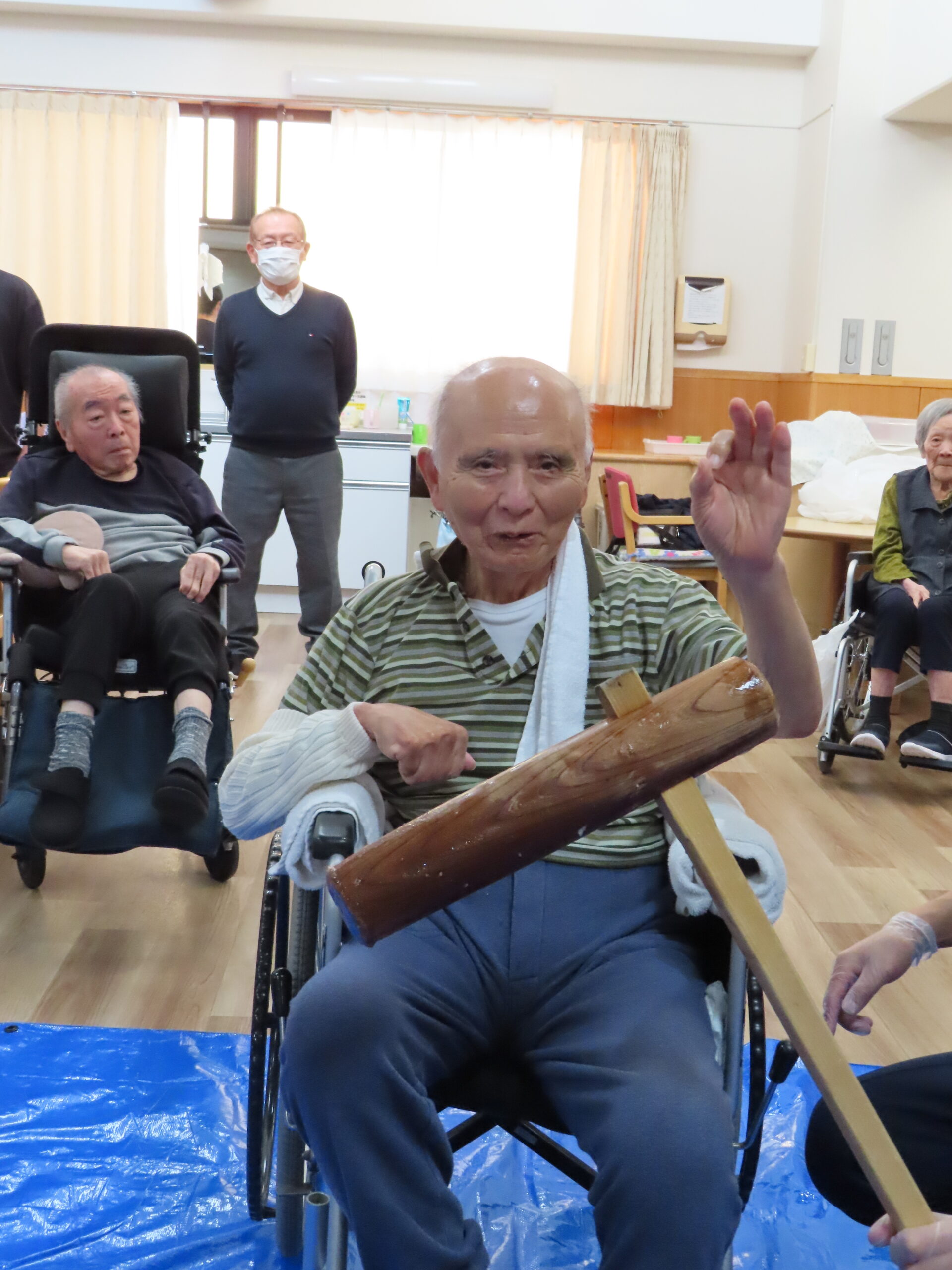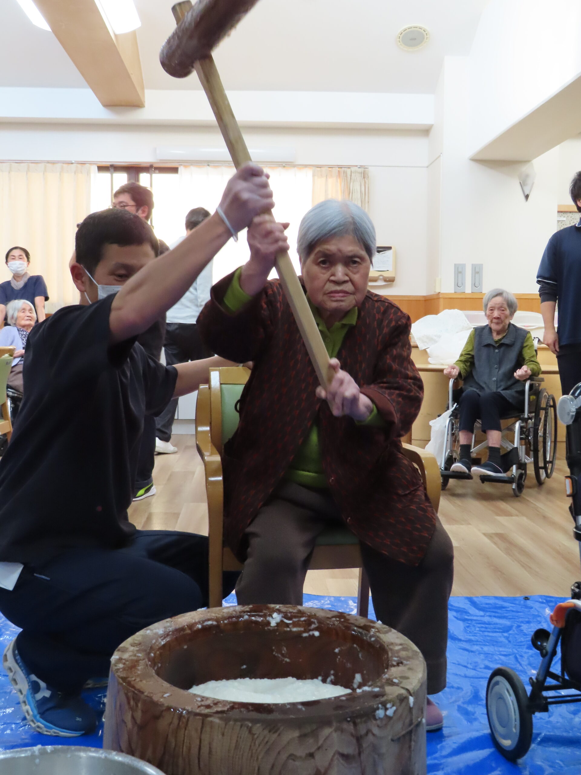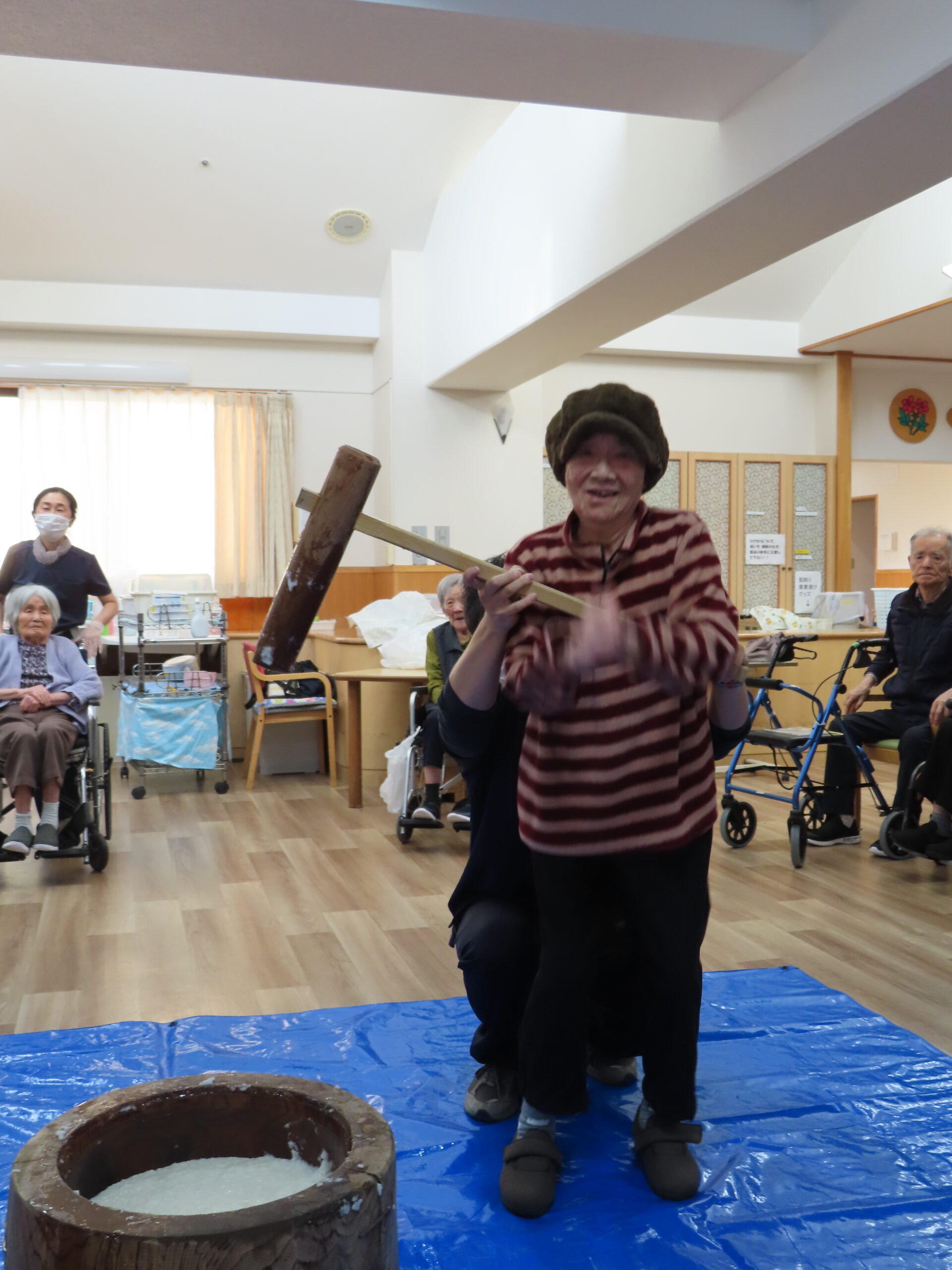 施設長、職員も力強くお餅をついて世代を超えて楽しまれていました😁🎶
