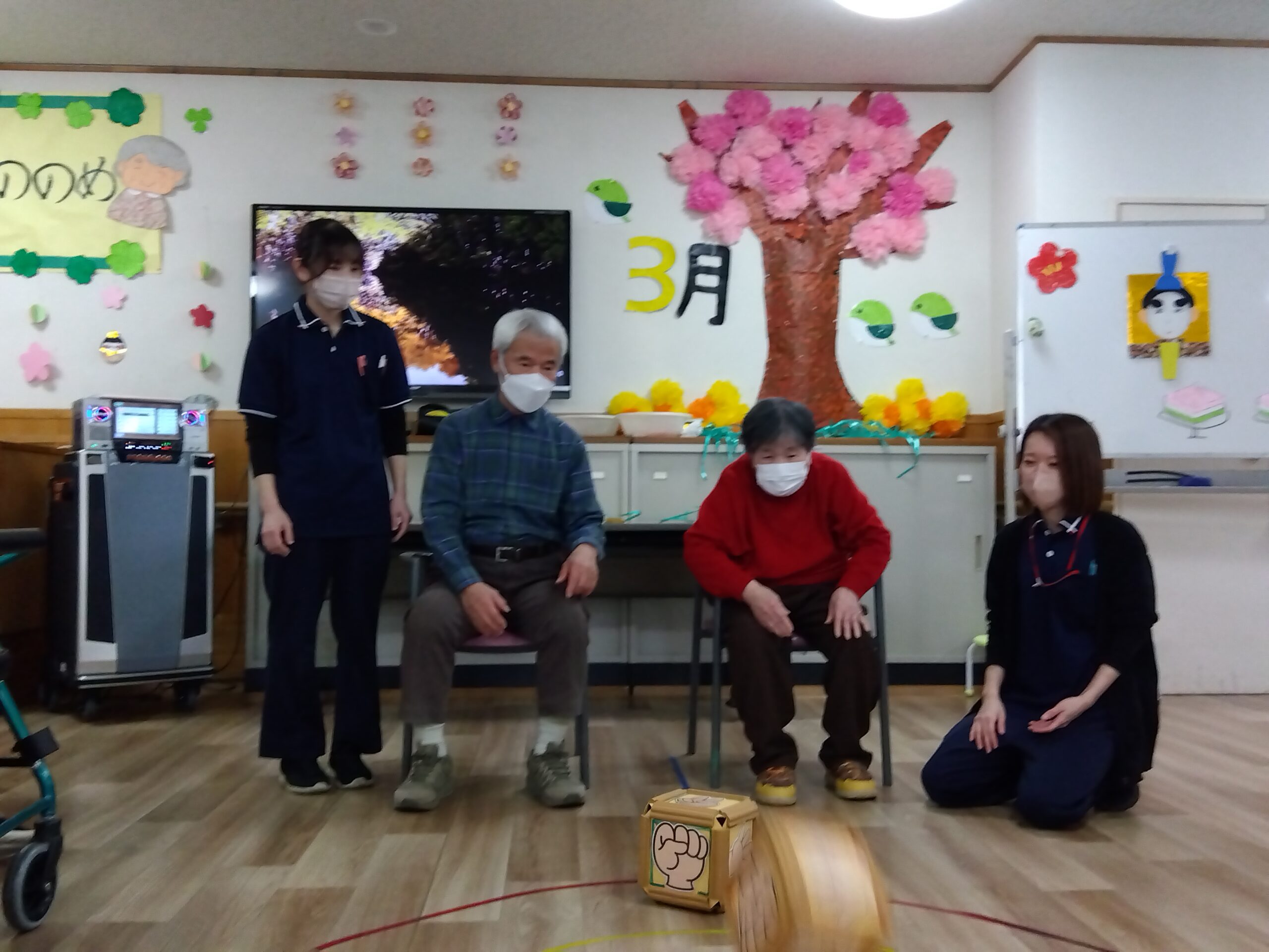 サイコロでじゃんけんを行い、勝った利用者様にはひな祭り使用の金メダル、負けた利用者様には銀メダルをプレゼントさせていただきました!!