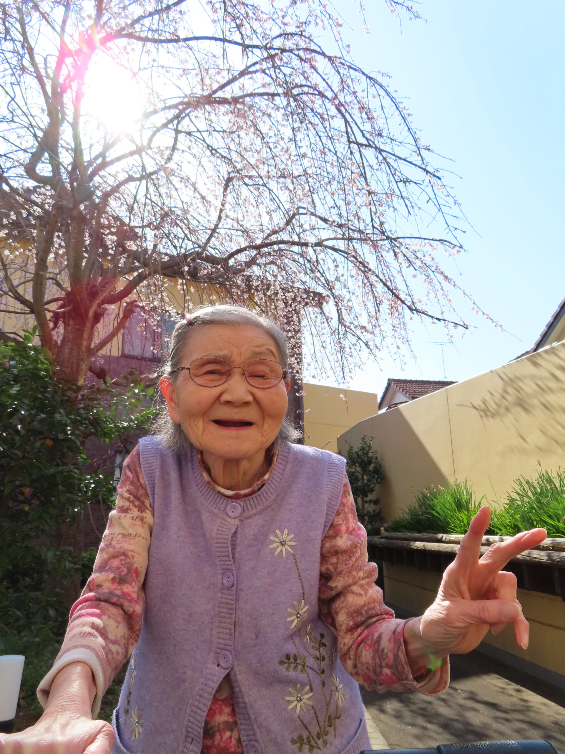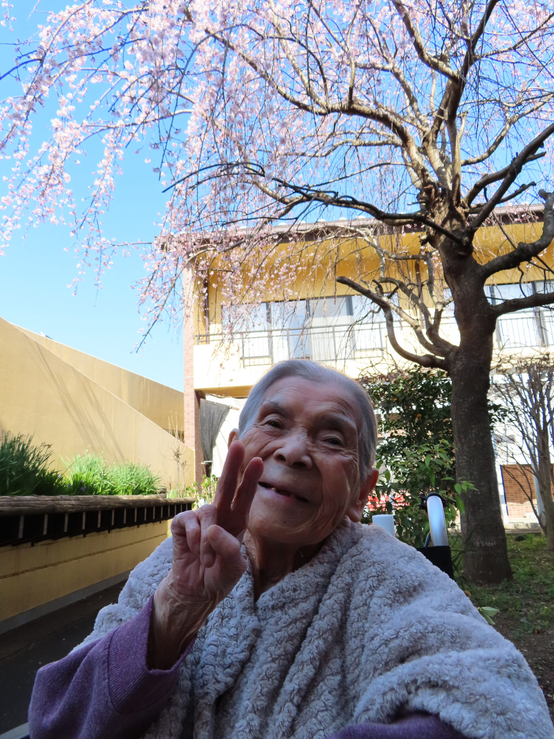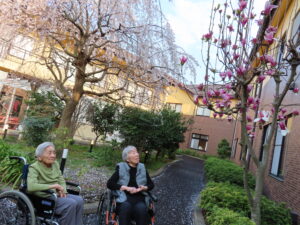 外の空気を吸いながら桜を見てリラックス😌皆さんとても喜ばれていました♪